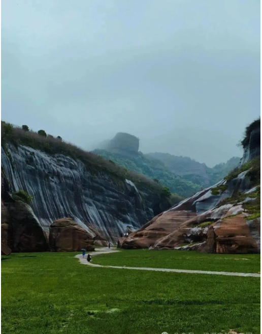 早上前往网红双桥水库,被誉为“湖南版塞达尔”,属典型丹霞地貌区,每年10月至次年5月枯水期水位下降时,库区显露沟壑纵横的丹霞峡谷,红色岩层与绿草构成特殊景观。