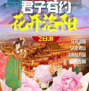 D1:早指定时间乘大巴赴十三朝古都-洛阳,抵达后赴洛阳,游览【洛阳牡丹园】,盛唐建筑的牡丹文化区,有“花开时节动京城”、“国色天香”之称的国花牡丹观赏区。体会“国运昌时花运昌,太平盛世喜牡丹”这一千古不变的历史哲理;花是美的象征,爱美是人类的天赋。赏花是净化心灵、陶冶情操的精神文明之举。牡丹为百花盟主,中国国花;牡丹,花朵硕大,花容端庄,色彩绚丽,艳而不媚,给人以雍容典雅,富丽堂皇的感觉。园中向中外游客系统讲述了洛阳牡丹发展的辉煌历程,集中全面展示了牡丹文化、牡丹技术、牡丹应用、牡丹艺