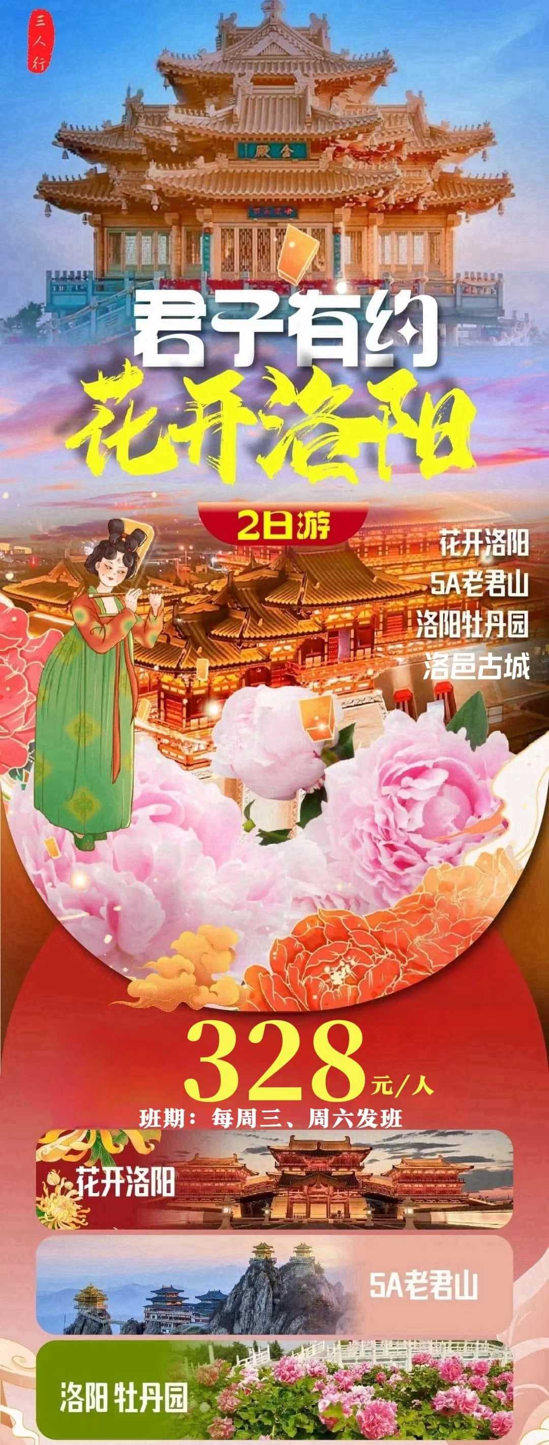 2、门票:60 岁以上免门票。60 岁以下需自理老君山门票 60 元/人+牡丹园门票 40 元/人(部分牡丹园 65 岁或 70 岁以上免,具体以实际参观牡丹园公告为准)