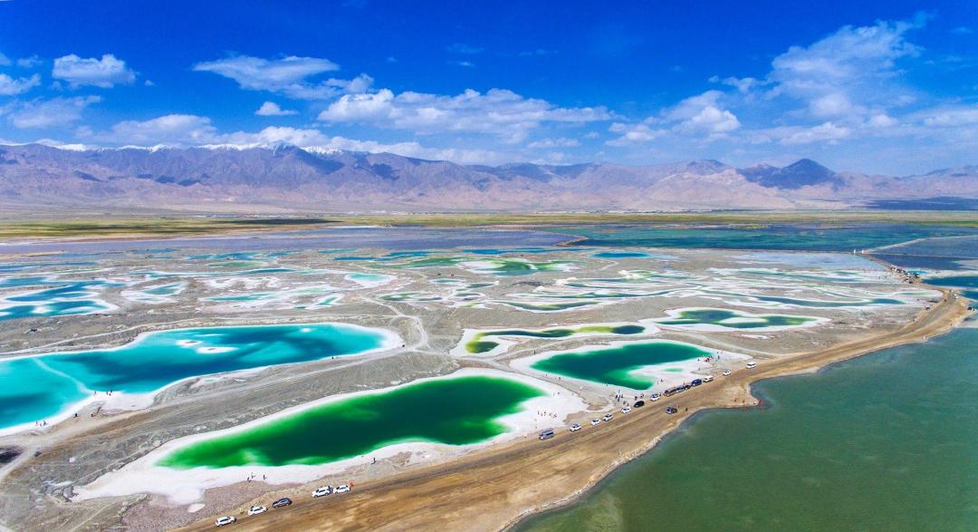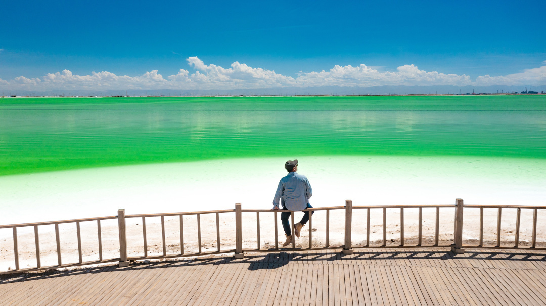 【察尔汗盐湖】,它是中国最大、世界第二的盐湖,氯化钠储藏量高达500亿吨以上,可供全世界40亿人食用1000年之久。
