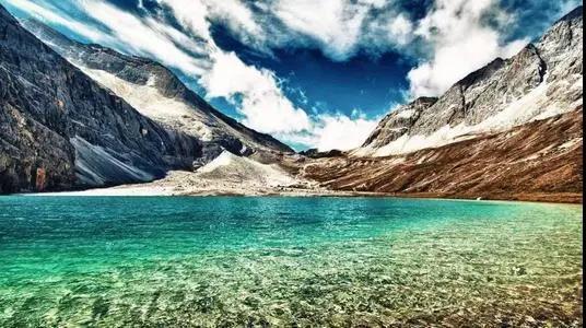 今天早上坐景区交通车进入亚丁村,可徒步去牛奶海、五色海,也可以游玩仙乃日或央迈勇景点,位于四川亚丁自然保护区内,又叫俄绒措:古冰川湖,状如水滴,面积0.5公顷,四周雪山环绕,湖水清莹碧蓝,山止成瀑,以其玲珑秀雅水色翠蓝而著名,俄绒措上方有大片的冰川。传说是能治聋哑怪病的圣湖