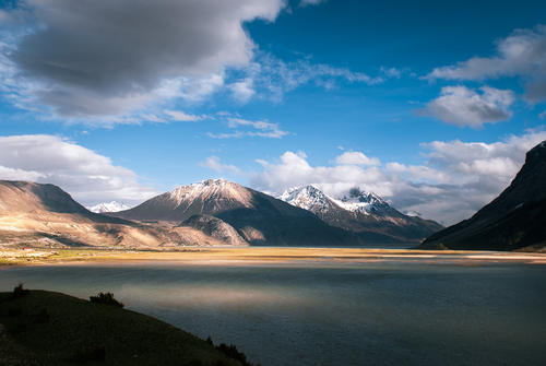 然后翻越按季拉山(海拔4475米)后抵达然乌,然乌湖是帕隆藏布江之源,草地、森林、树影以及白色的水禽和湖岸浅滩五颜六色的卵石,和着碧蓝的湖水、白雪皑皑的雪峰,景色如诗如画。狭长的湖面向西蜿蜒十余公里逐渐收缩成一道河谷(然乌湖的景色因季节变化而不同)。