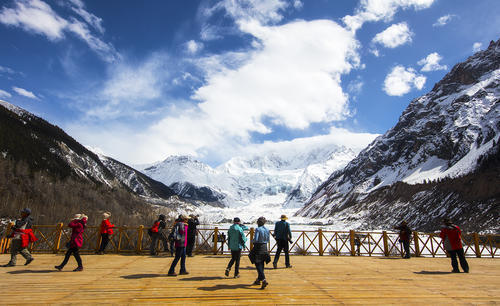 米堆冰川:位于藏东南的念青唐古拉山与伯舒拉岭的接合部,这里是我国最大季风海洋性冰川的分布区。念青唐古拉山与伯舒拉岭是一系列东南走向的高山,从印度洋吹来的西南季风,能够沿雅鲁藏布江和察隅河谷北上,深入到这一系列高山之中,并带来了大量的降水,于是在一个叫米堆的藏族村庄后的一座海拨6385米的雪峰周围,诞生了一个壮美的精灵———米堆冰川。