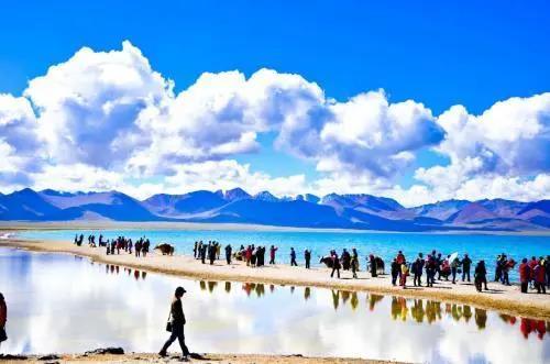 今日前往那曲,沿途观赏藏北大草原、青藏公路、青藏铁路,翻越那根拉山、游览西藏三大圣湖之一的纳木措。纳木措是世界上海拔最高的咸水湖,也是中国第二大咸水湖。“马年转山、羊年转湖、猴年转森林”,每到藏历羊年都有大批信徒来此转湖,以求灵魂超越。一望无际的湛蓝色湖水和无比清澈透明的蓝天,令人无法分辨出哪里是湖水,哪里是蓝天,远远望去似乎天连着水,水连着天,天蓝水更蓝。